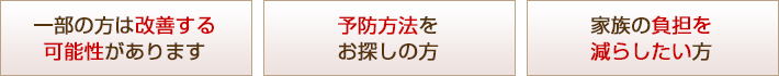 どちらにも該当する方は、私どもで改善実績のあるパターンです。※もう少し詳しくお知りになりたい方は